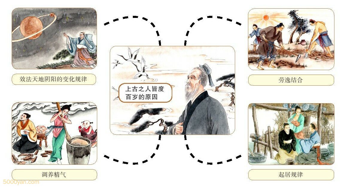 如何應用黃帝內經養生? 黃帝內經素問篇《上古天真論》指出: 黃帝問余聞上古之人,春秋皆度百歲而動作不衰;今時之人,年半百而動作皆衰者,時世異耶?人將失之耶? 岐伯對曰:上古之人,其知道者,法於陰陽,和於術數。飲食有節,起居有常,不妄作勞,故能形與神俱,而盡終其天年,度百歲乃去。