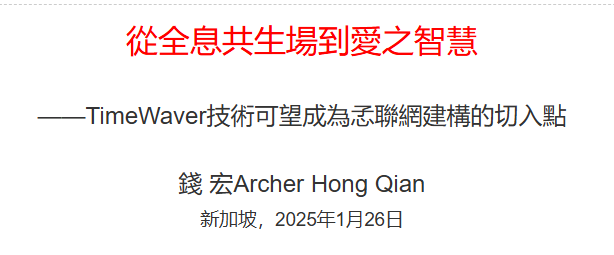 從全息共生場到愛之智慧 — TimeWaver技術可望成為孞(信)聯網建構的切入點