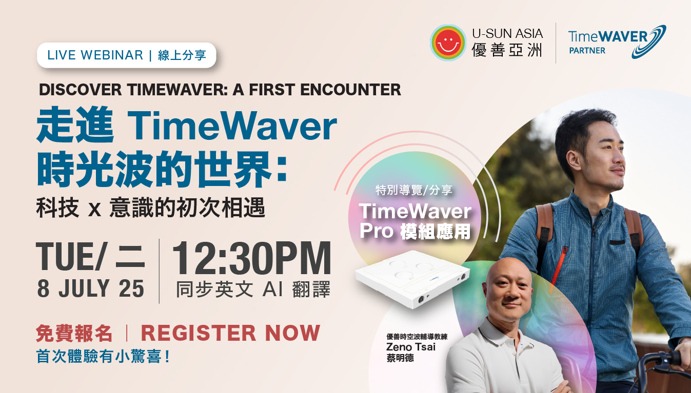 本次講座由 優善時空波培訓專員 Zeno Tsai 蔡明德 主講,將深入淺出帶你認識 TimeWaver 背後的核心理念與應用方式,並特別導覽旗艦系統 TimeWaver Pro 的實務模組與實際應用案例。