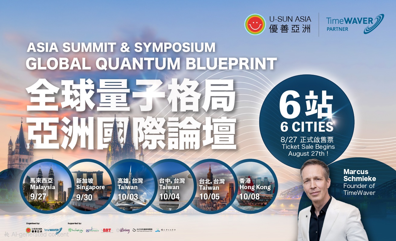本論壇由 U-SUN Asia 優善亞洲 與 TimeWaver 創辦人 Marcus Schmieke 親自領軍,並與多位頂尖專家共同規劃;論壇將以跨界整合的宏觀視角,帶您探索從科學、哲學、心理、醫學到環境能量等領域,如何運用信息場在「AI人工智能」與「全人健康」的終極應用,為您揭示個人與企業的成功藍圖。